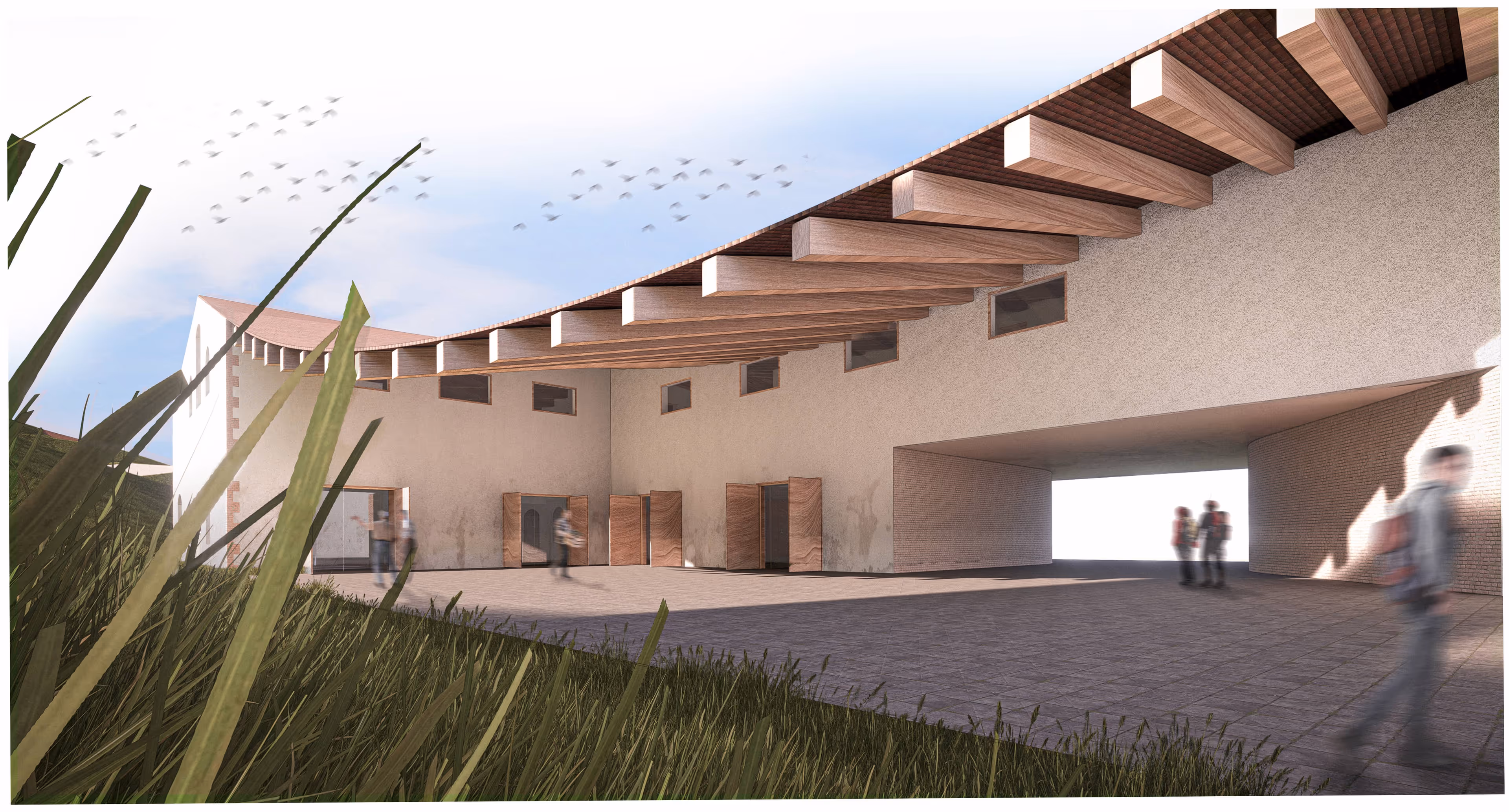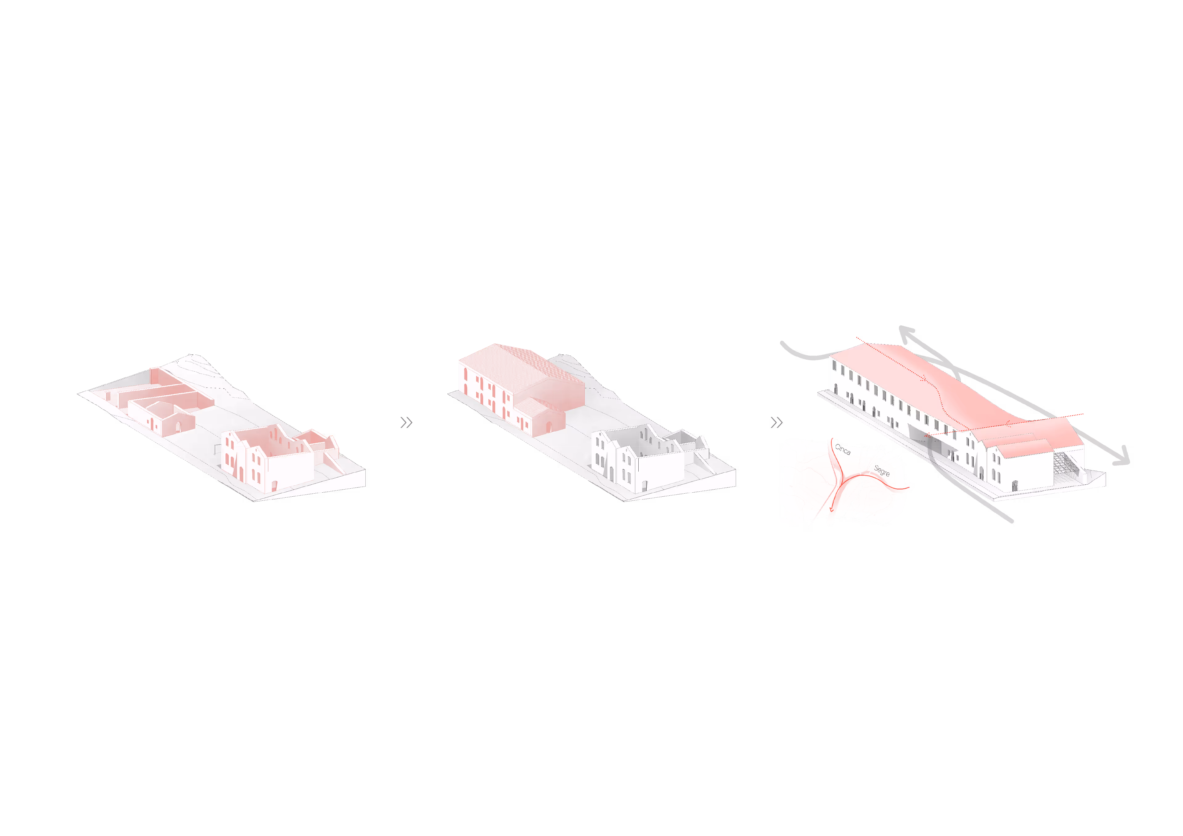 A key aspect of the project is the 3D reconstruction of the existing structures, inspired by the confluence of the Segre and Cinca rivers at Aiguabarreig Segre-Cinca. By intertwining the primary axes of the roofs, the central buildings are reimagined to create a distinctive and innovative architectural space.
